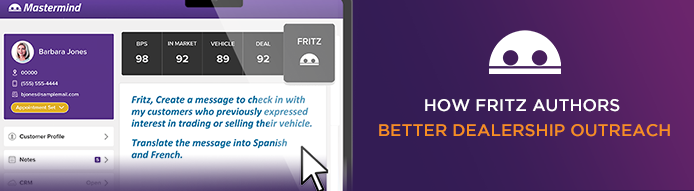 Fritz lets you turn automotiveMastermind’s industry-leading data into personalized messages that build trust and drive engagement.